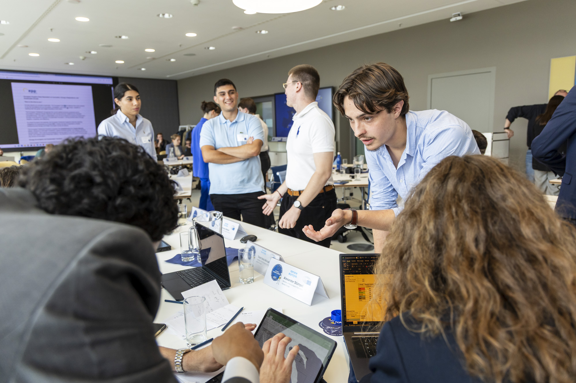 Business Psychology is Alexander’s degree subject. He stands at the lectern on behalf of the “Renew Europe” party and announces: “The time to act is now!” It’s cool, he says, to slip into the role of a politician, to adopt and represent ideas – especially when they are not your own. The extensive preparation proved worthwhile, he says: in sessions over two days they practised how to give a presentation, use rhetorical devices, act confidently and, above all, “to listen and want to understand what the other person is saying.”